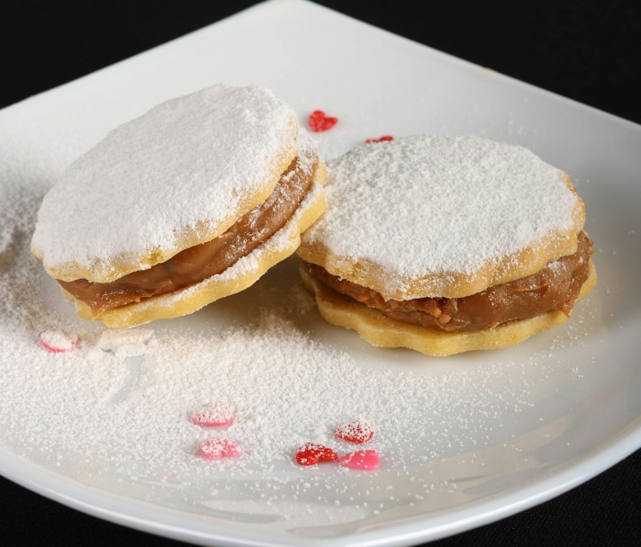 - Cut out discs of dough and bake until the edges are golden brown. This will give you the cookies, which will be filled with dulce de leche in pairs and delicately covered with icing or powdered sugar.